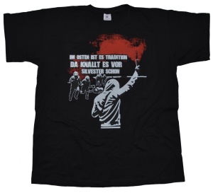 T-Shirt Im Osten ist es Tradition II, vorn großer Druck: - Im Osten ist es Tradition da knallt es vor Silvester schon -
