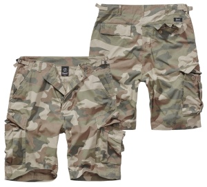 Cargoshort Savage Vintage von Brandit im Armystyle mit vielen Tasche, leicht überknielang, mit Gürtel, weitem Bein, Beintaschen, sowie 2 aufgesetzten Minipocket Taschen.