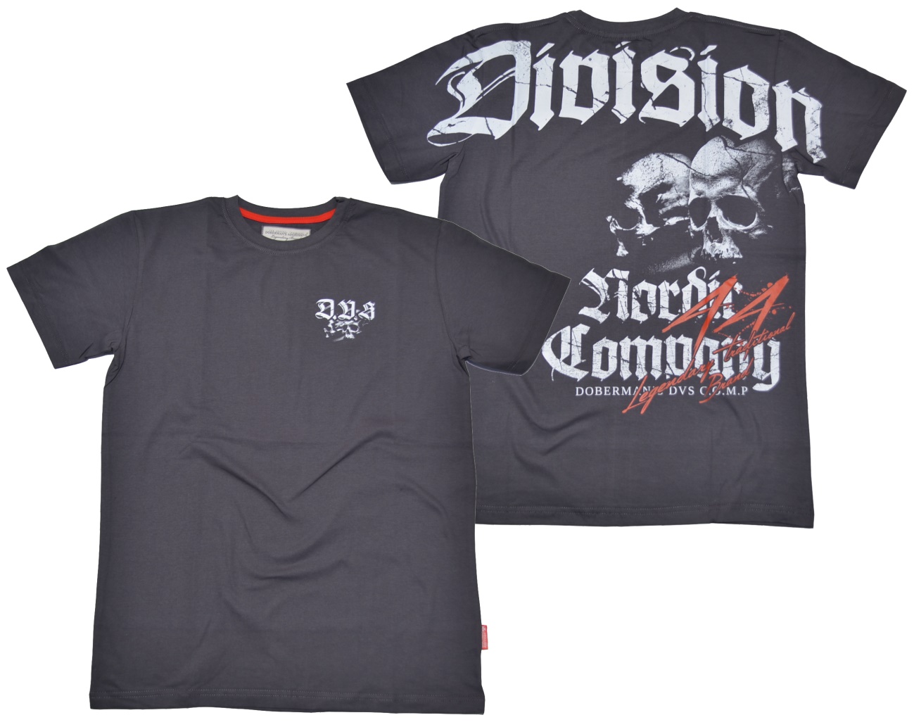 T Hemd / T Shirt Dobermans Aggressive Nordic Brand D.V.S mit kleinem Motiv-Druck auf linker Brust und großem Division Nordic Company Druck auf dem Rücken: - D.V.S Division Nordic Company 44 Legendary Traditional Brand Dobermans DVS Company -