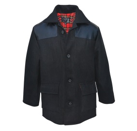 Aus kräftigem Wollmischgewebe, Schulterbesatz aus weiches Kunstleder.