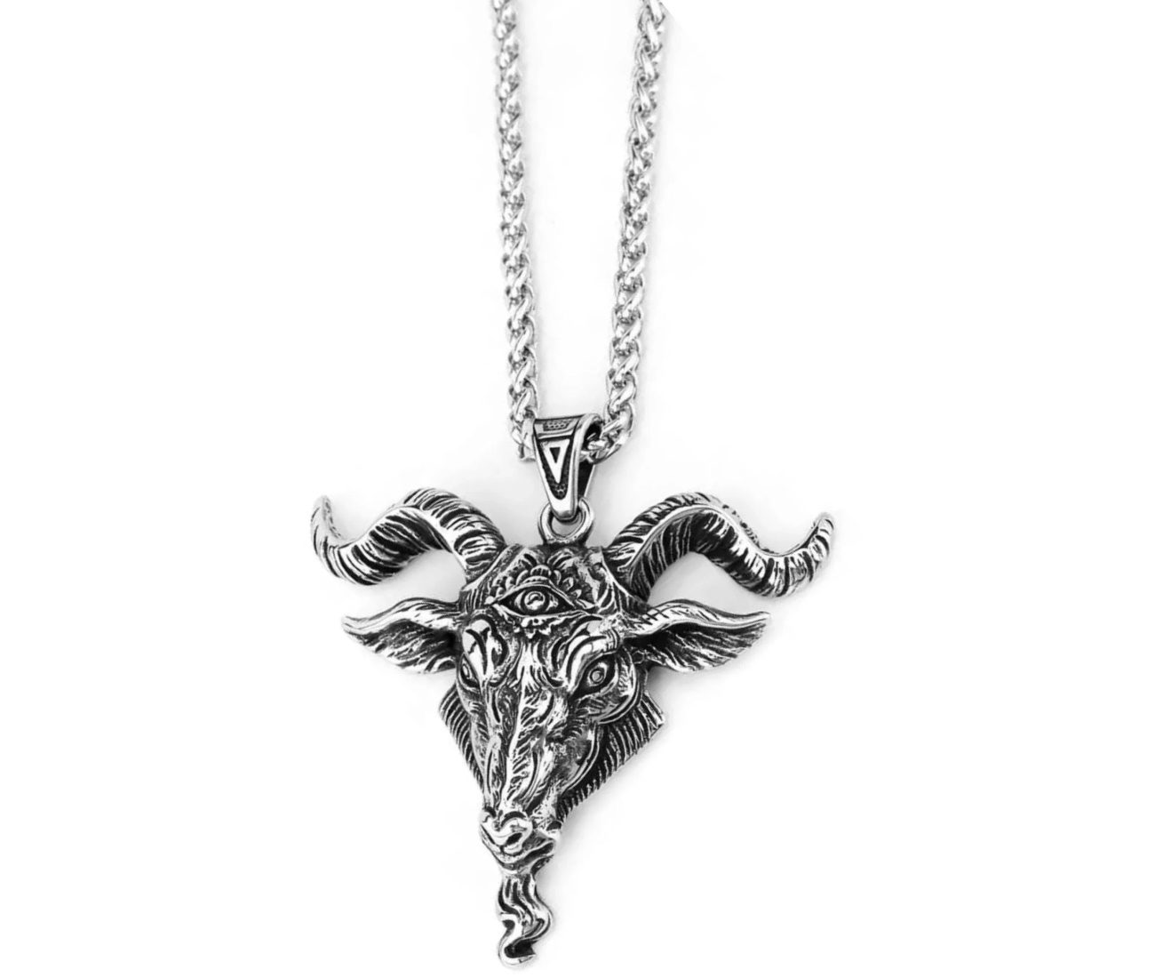Anhänger und Kette aus Edelstahl mit Motiv: Goat Head