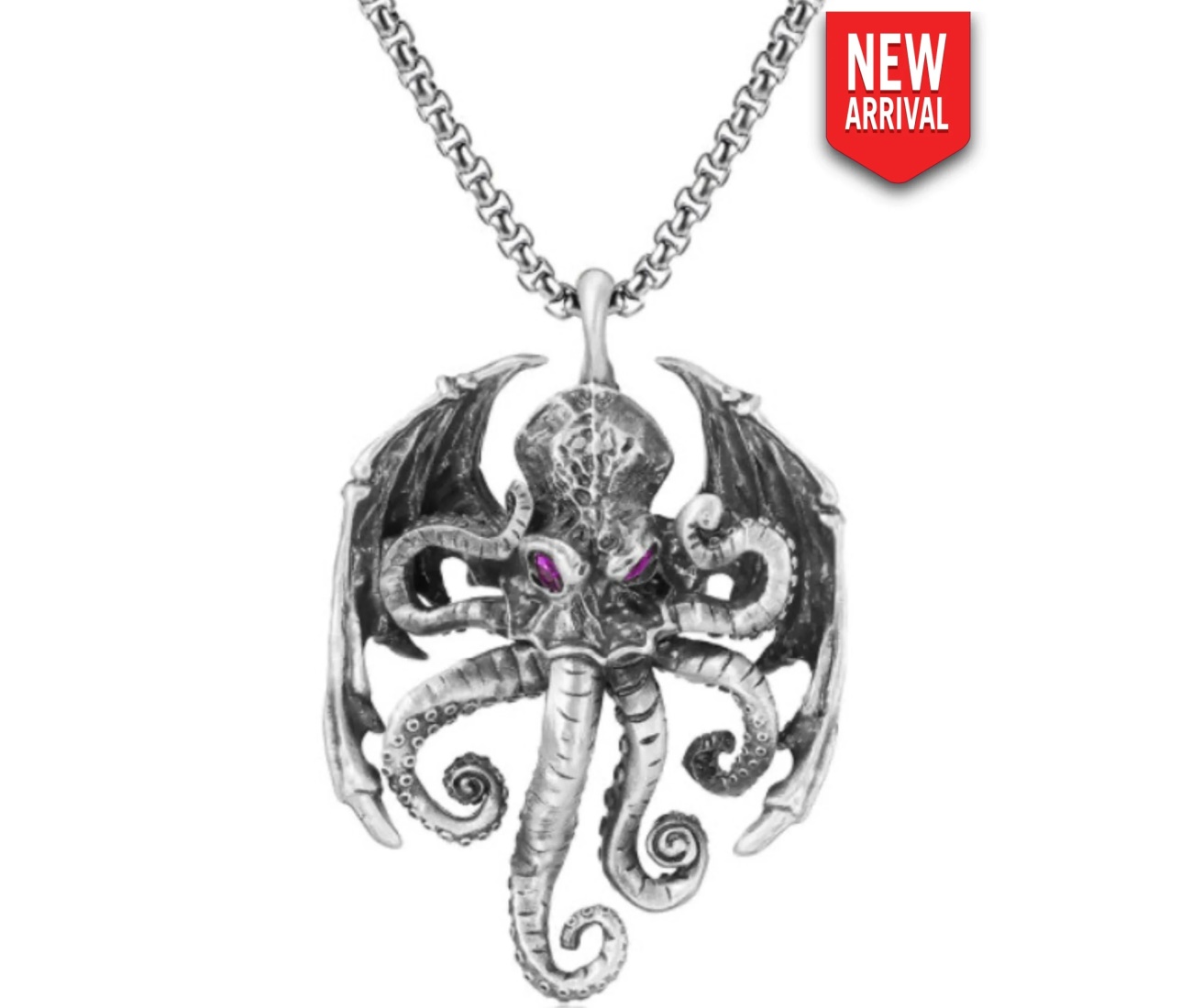 Anhänger und Kette aus Edelstahl mit Motiv: Krake