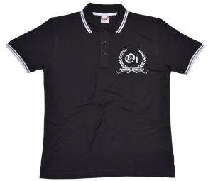 Poloshirt mit kleinem Druck auf linker Brust: Loorbeerkranz Oi!; weiß/rote Kontraststreifen
