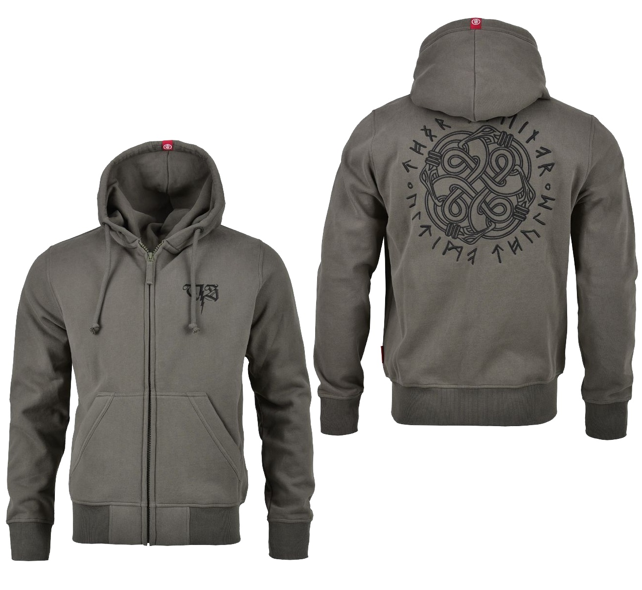Thor Steinar Kapuzenjacke mit gesticktem Wikingermotiv, bequem, markant und inspiriert von nordischer Tradition. Verdeckter Reißverschluss; dezenter Stick auf der Brust; angesetzte Belege an den Taschen; dezentes Labeling.