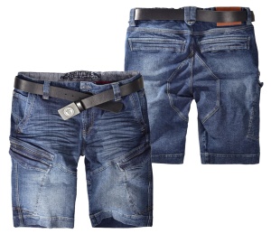 Egal wo und wie. Diese moderne Thor Steinar Cargo-Jeans-Shorts ist in diesem Sommer einfach “ein Muss“. Beintaschen mit versteckten Druckknöpfen in den Taschenklappen; Weblabel ; Label-Patch auf hinteren Hosenbund; geprägte Frontknöpfe; Stick auf kontrastfarbenen Innenbund mit Druck.