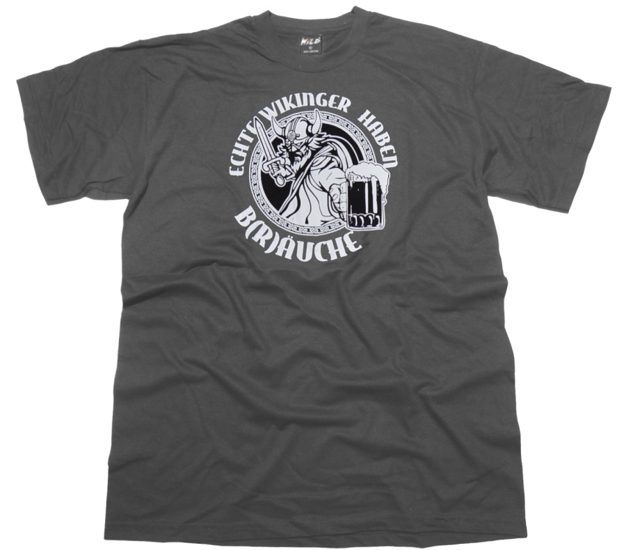 T-Shirt vorn mit großem Motiv-Druck: - Echte Wikinger haben B(r)äuche -