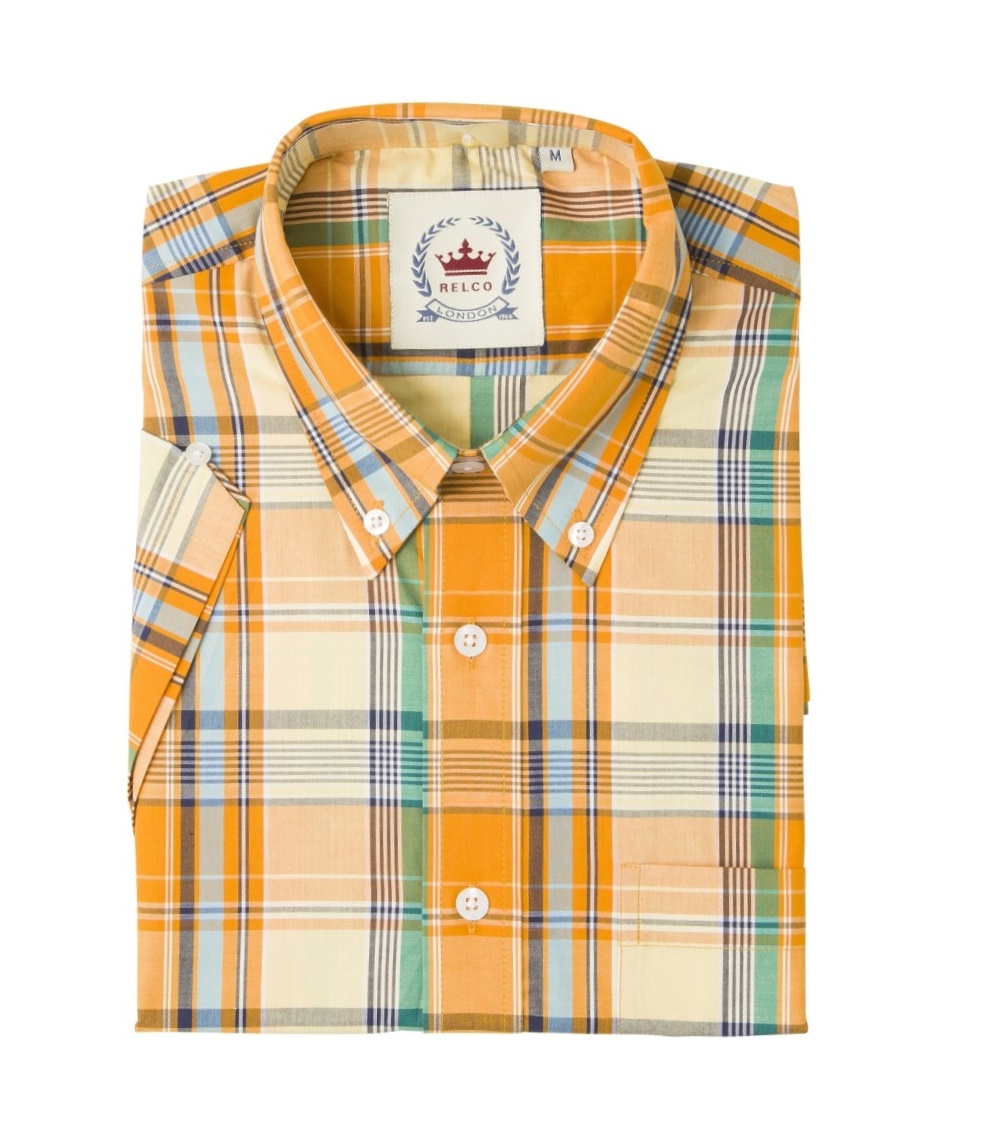 Klassisches Karohemd von Relco in kurzarm mit Button Down Kragen. Ein kleiner Knopf befindet sich rückseitig am Kragen. In der Mitte des Rückens mit Kellerfalte und ein kleiner Knopf befindet sich am Ärmel.